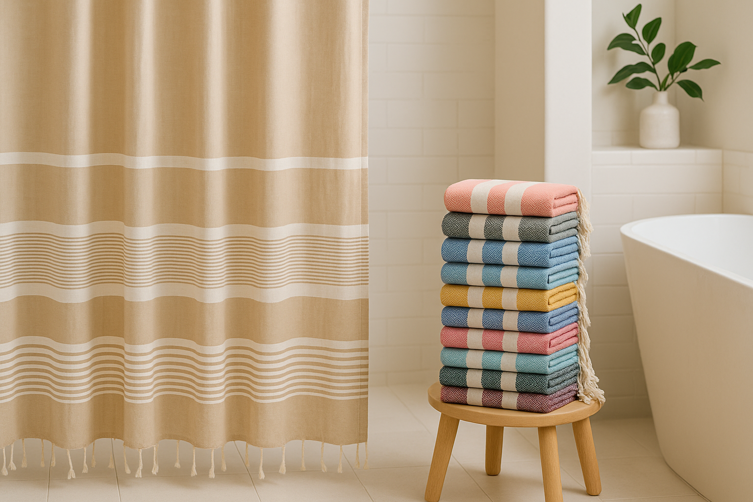 Soft, flowing cotton panels that bring calm, balance, and natural texture to your bathroom. Designed for everyday ease, made to feel like home.